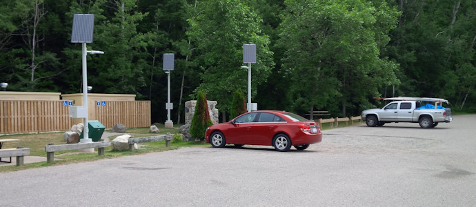 Der Parkplatz hat einen Picknick Platz. Ein Pfad führt zu den Wasserfällen.