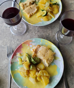 All my successful fishing was from the dock at Achilles Lake. We had a Northern Pike with potatoes and zucchini for lunch. My fileting skills do need refining, there were too many bones left in the filets. The fish was very tasty without any fishy taste, firm flakes and perfectly dressed with olive oil, pepper and salt.