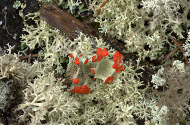 The Fire Tower cabin is falling apart and a skeleton of the wood stove inside is rusting away. A backcountry campsite is down by the lake, complete with a fire pit and a bench. The hike up to the fire tower is longer than we expected. The platform on top is in bad shape and, as we found out later, home to an Osprey. The 'No Climbing' sign is meant to keep people from going up to the top, but the condition of the structure is reason enough to stay on solid ground. A soft carpet of lichens around the tower covered the rocky ground. Looking close, the miniature world is beautifully complex and colourful.